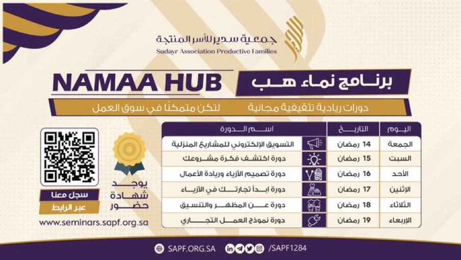 برنامج نماء هب (دورات ريادية تثقيفية مجانية لتمكين المتدربات من سوق العمل)
